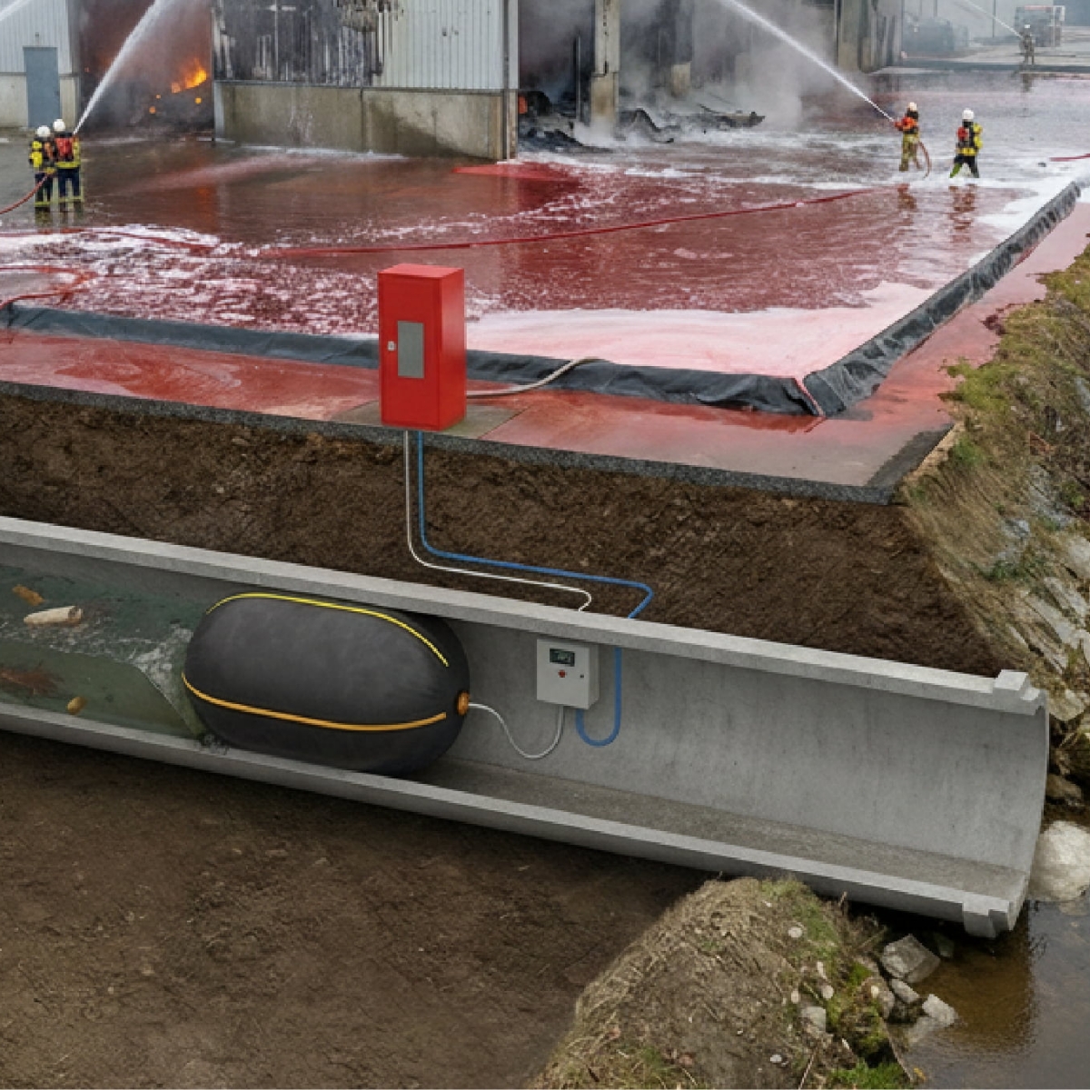 Les obturateurs anti-pollution gonflables sont conçus pour empêcher les eaux polluées, issues d’incendies ou de déversements accidentels de produits chimiques, d’atteindre le milieu naturel ou les réseaux d’assainissement. Fonctionnant comme une vanne pneumatique, ils participent à la mise en rétention du site en utilisant les canalisations comme zone de stockage tampon.